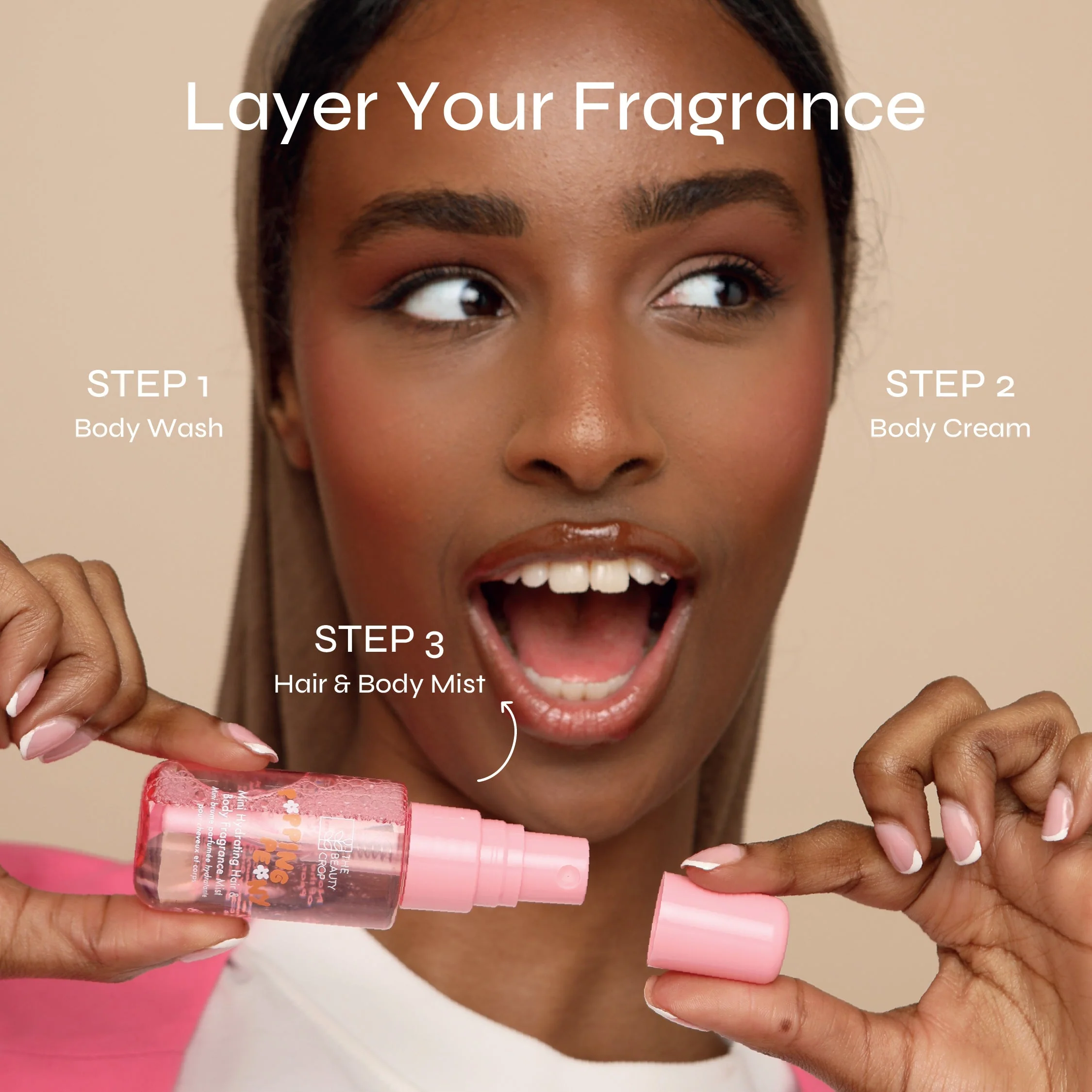 Treat yourself to our Mini Popping Peony Body & Fragrance Set and turn everyday moments into a fragrant escape.This delightful three-piece set begins with a gentle body wash that cleanses and refreshes your skin. Next, indulge in the rich body cream that deeply hydrates and nourishes, leaving your skin feeling silky smooth. Finish with the hair & body fragrance mist which features delicate notes of Jasmine, Lily of the Valley, Peach, Pear and Musk Accord for a light, uplifting spritz that keeps you feeling your best throughout the day.Packed with skin-loving ingredients like Peony Extract, Panthenol, Shea Butter and Glycerin, this set is all you need to pamper your skin while surrounding yourself in an irresistible floral freshness.Popping Peony is more than just a fragrance; it’s the confidence to blossom and glow wherever life takes you.